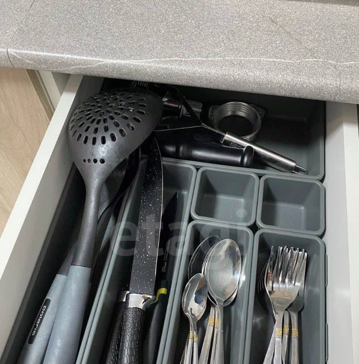 В квартире есть все для проживания из мебели и техники: кровать, шкаф, диванчик, кухонный гарнитур, посуда, столовые принадлежности, стиральная машина, гардеробный шкаф.