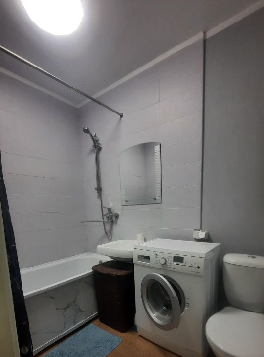 В квартире выполнен косметический ремонт. Просторная комната с двуспальной кроватью, шкафами и диваном. Из мебели также имеется холодильник и стиральная машина. Кухня оснащена современной техникой, включая плиту и микроволновую печь. Санузел совмещенный, оснащен ванной и стиральной машиной. Из окон открывается приятный вид во двор . Балкон добавляет дополнительное пространство для отдыха. Курение в квартире запрещено.