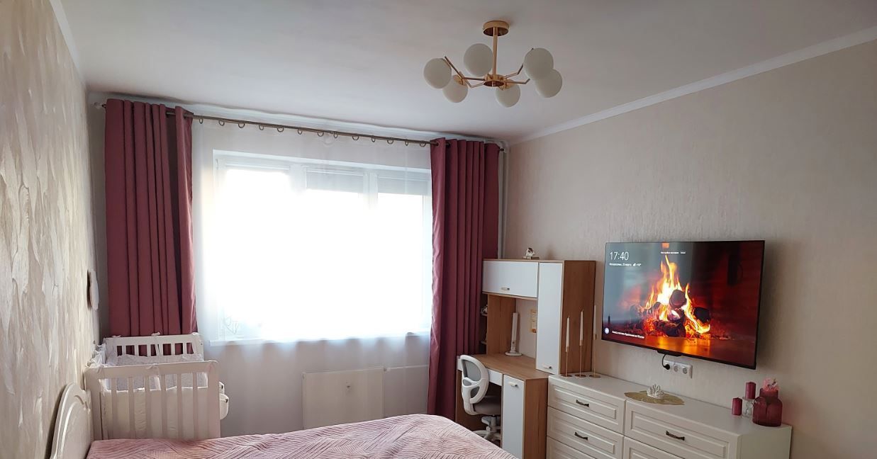 Удобная планировка: изолированная комната и просторная кухня-гостиная.