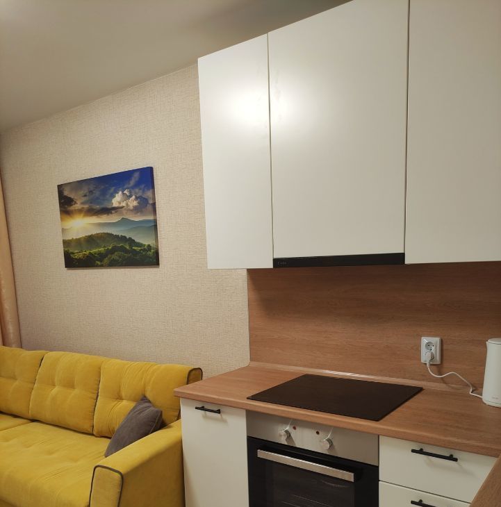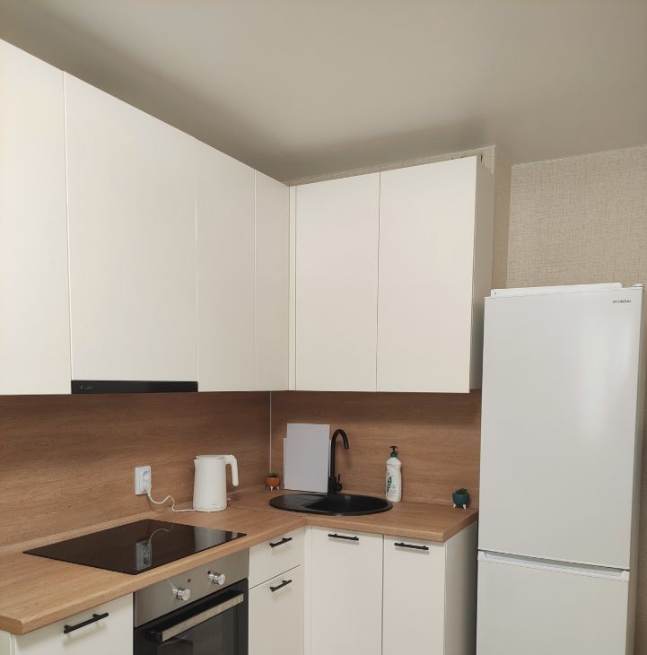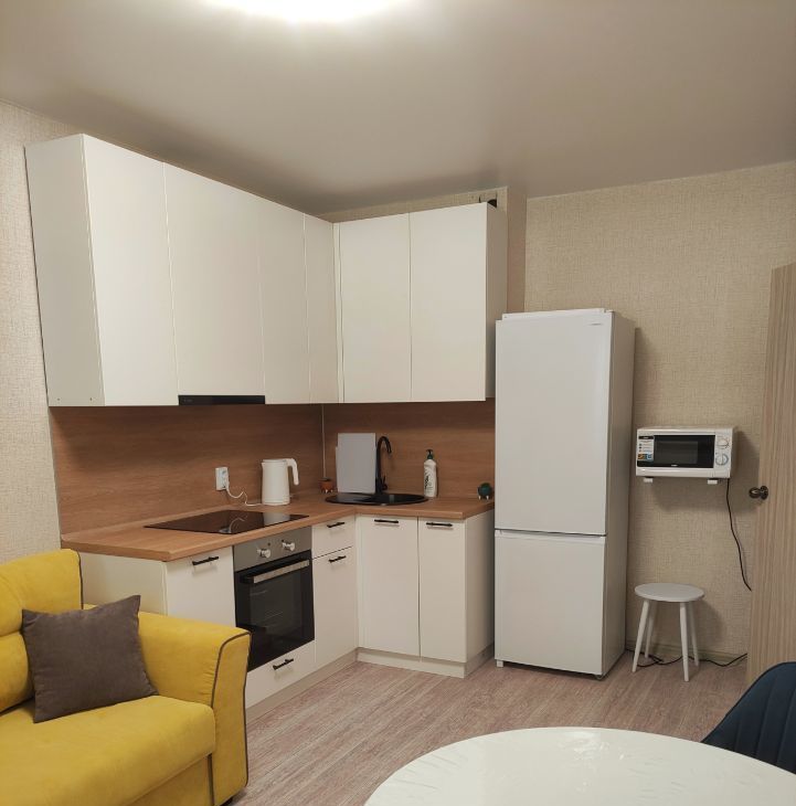 Из техники имеется холодильник, микроволновка, чайник, электроплита (панель), духовой шкаф, стиральная машина. Для вашего удобства подключено цифровое ТВ.