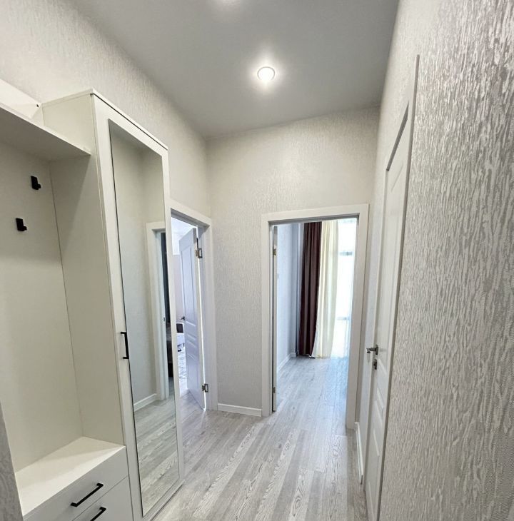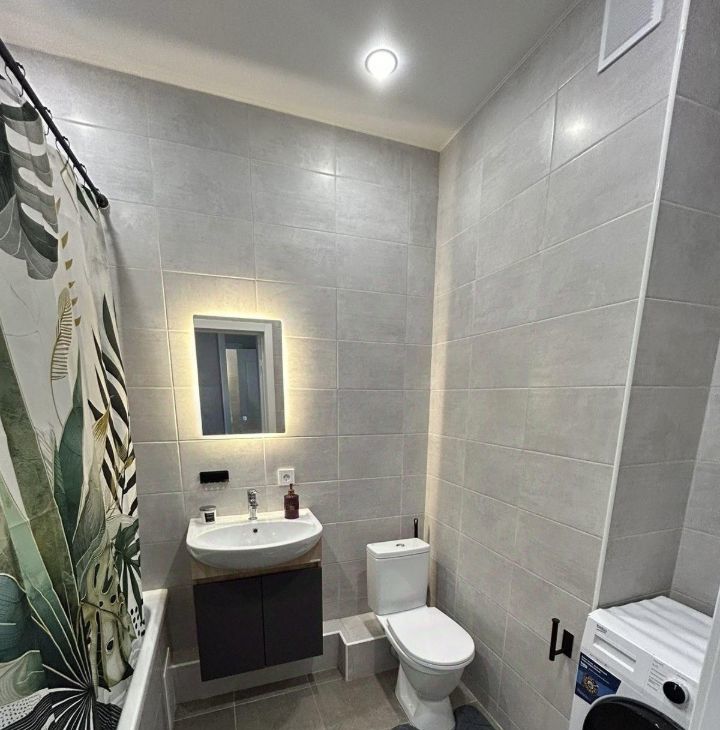 В квартире свежий ремонт, необходимая мебель и бытовая техника: кондиционер, микроволновая печь, варочная панель, чайник, стиральная машина, телевизор, холодильник, пылесос. Частично посуда и столовые приборы.