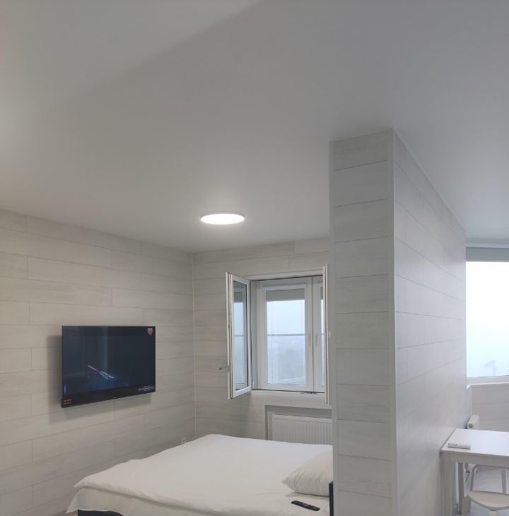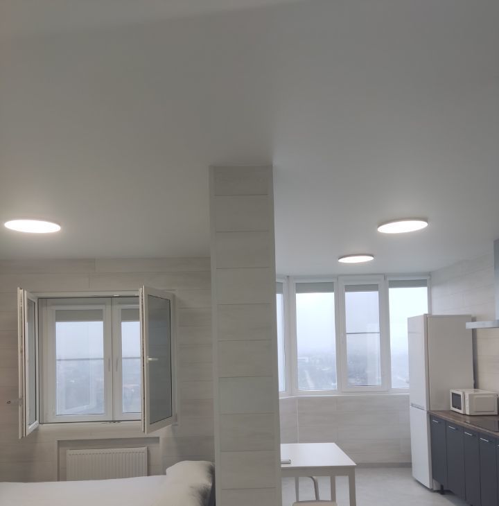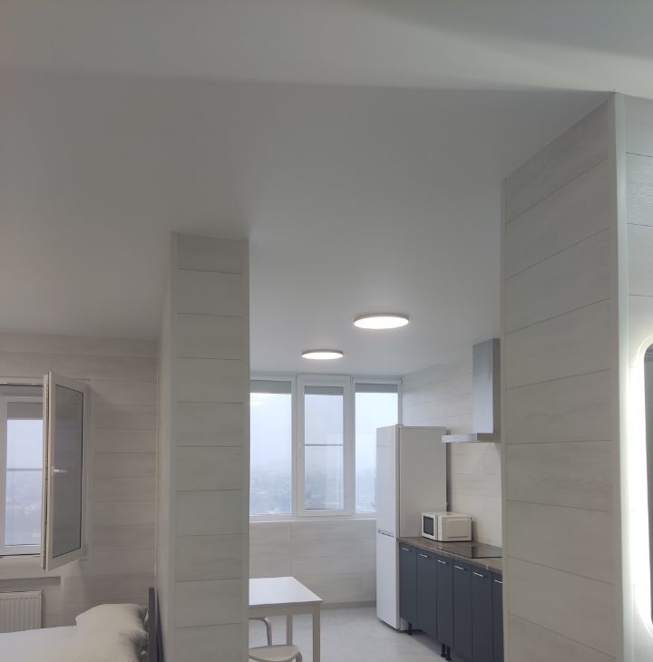 Собственник,в квартире сделана шумоизоляция фото в объявлении, потолок натяжной матовый белый, стены ламинат, пол керамогранит 11 мм толщина 60/60, всё остаётся новому владельцу,в ЖК два въезда, шлагбаум, охрана 24/7,закрытая территория,для детей и взрослых есть зоны отдыха.