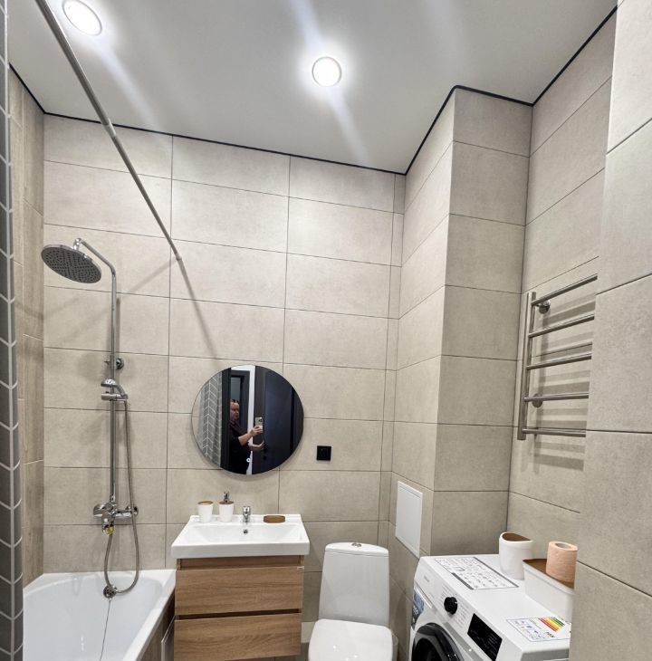 Ванная комната совмещенная, оборудована современной сантехникой и стиральной машиной. Лоджия застеклена, с видом на улицу.