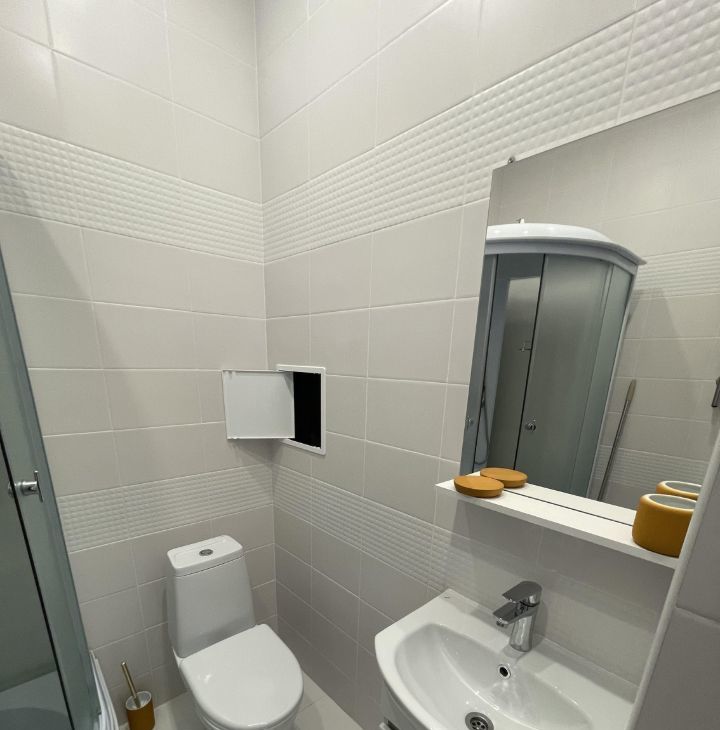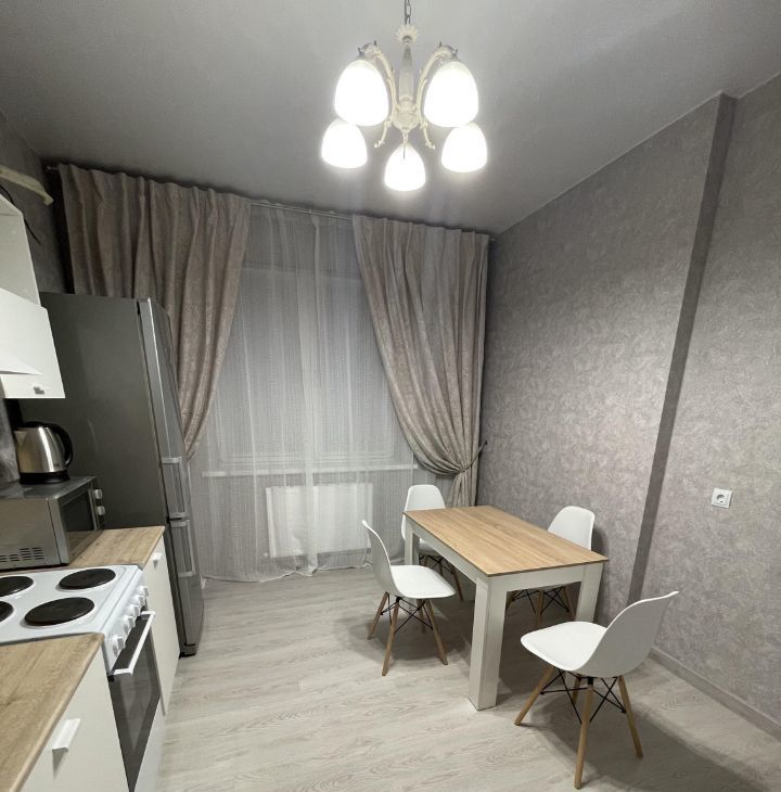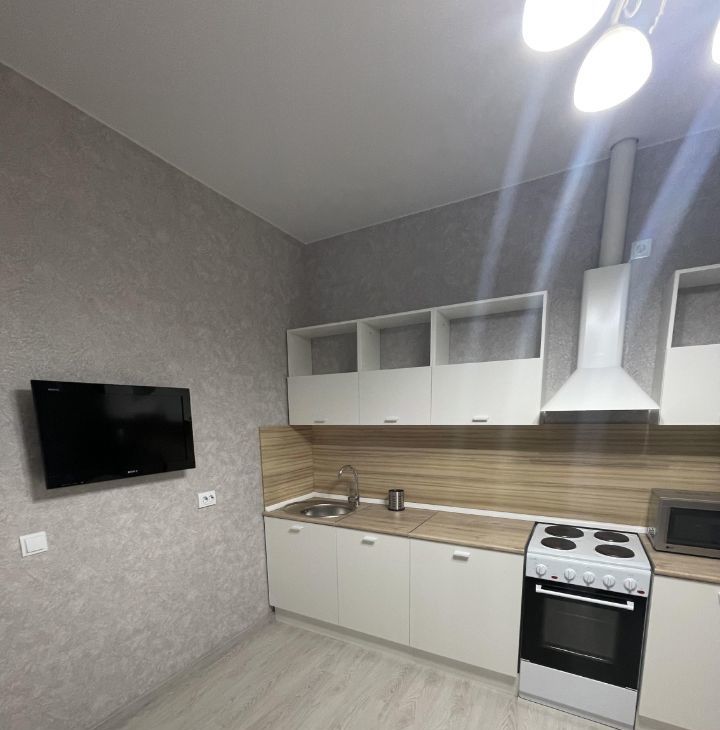 В квартире имеется вся необходимая мебель и бытовая техника: сплит-система в комнате, варочная поверхность, духовка, холодильник, вытяжка, микроволновая печь, электрочайник, стиральная машинка, телевизор на кухне и в комнате, шкаф-гардеробная с подсветкой, анатомический диван (очень удобный дня сна).