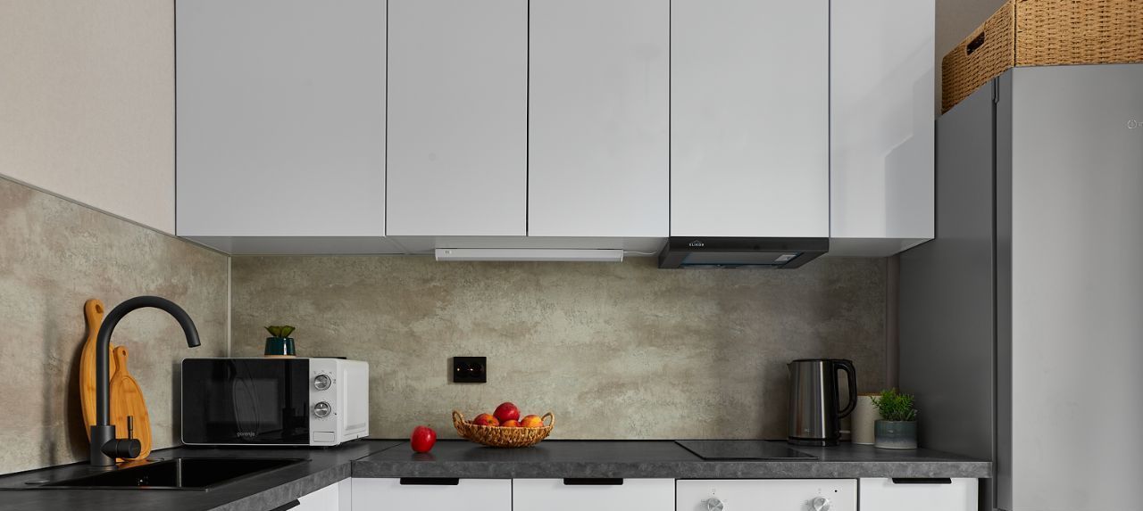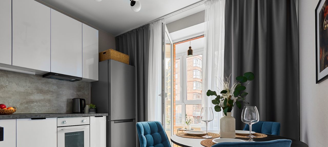 Квартира с евроремонтом, обставлена современной мебелью. В комнате и на кухне есть всё необходимое для комфортного проживания: кондиционер, холодильник, посудомоечная и стиральная машины, а также телевизор. Санузел совмещённый, с ванной. Окна выходят во двор, поэтому в квартире тихо и уютно. Есть балкон, где можно провести утреннее время с чашкой кофе.