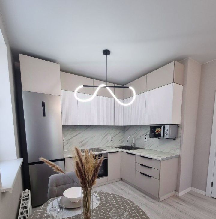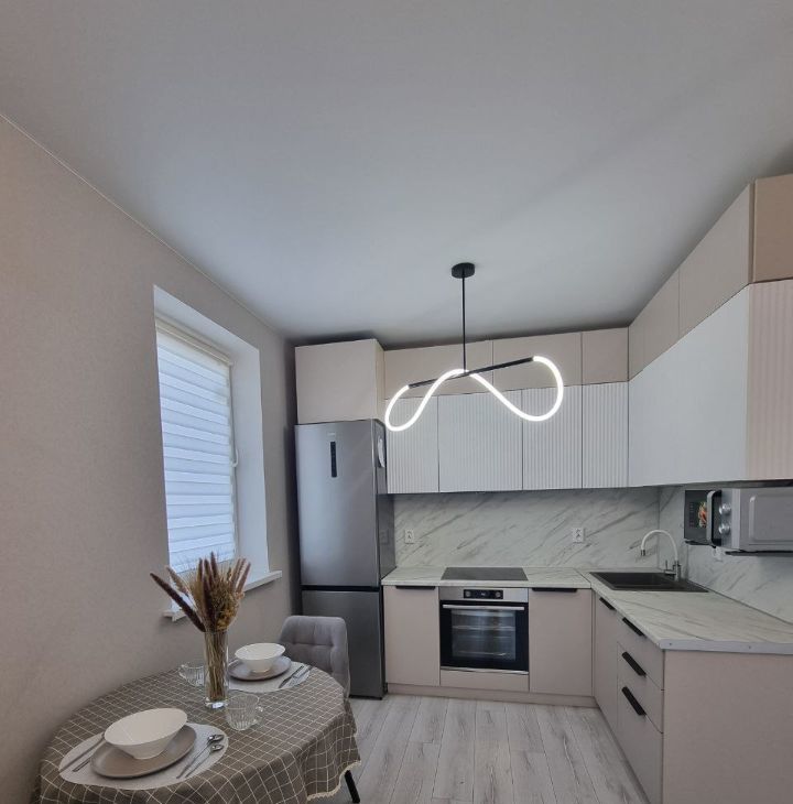 В квартире выполнен дизайнерский ремонт, что создаёт уютную атмосферу. Просторная кухня оснащена современной техникой: холодильник, варочная панель, духовой шкаф, микроволновая печь.