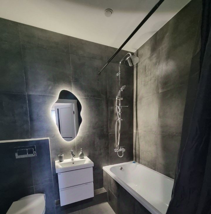 Санузел совмещённый, оформлен в современном стиле с качественной сантехникой. Квартира оборудована балконом с видом на город, где можно насладиться свежим воздухом. Для удобства жильцов в доме есть грузовой лифт. Парковка открытая во дворе. Курение запрещено, но допускается проживание с детьми. Животные не допускаются.