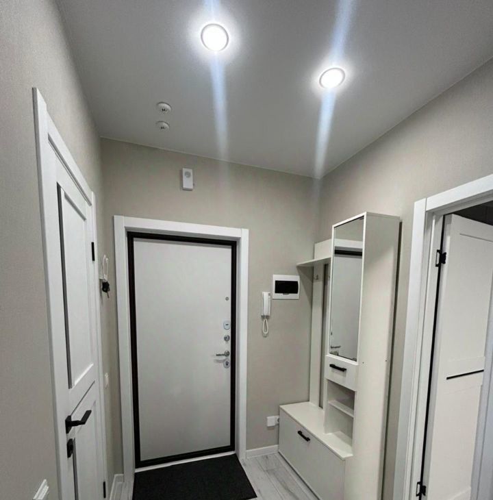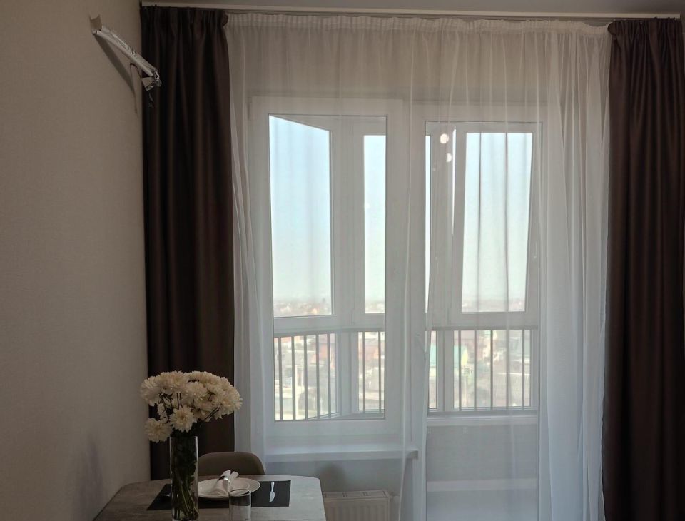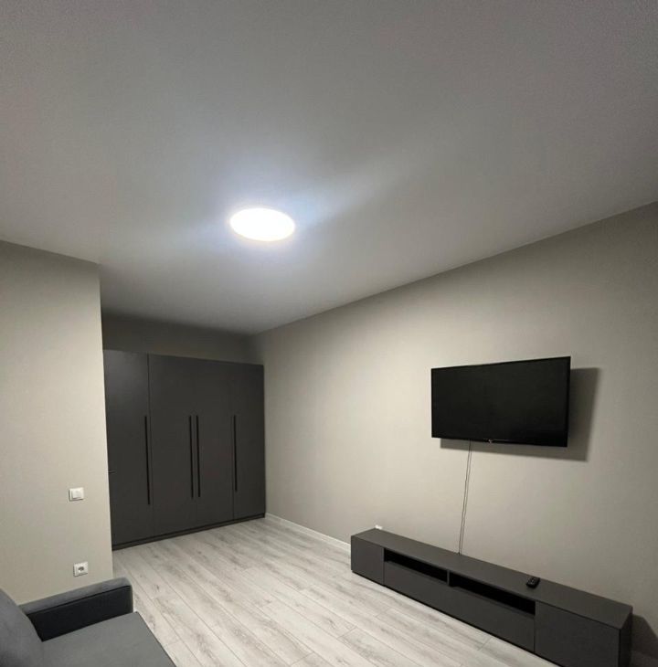 Сдается уютная однокомнатная квартира площадью 34 кв. м на 6 этаже 9-этажного дома. Дом новый, построен в 2025 году. Высота потолков — 2.6 метра, что создает ощущение простора. Окна выходят во двор, поэтому в квартире тихо и спокойно. Очень красивая закрытая зеленая территория, шикарные детские площадки. Двор охраняется, во дворе повсюду установлены камеры.