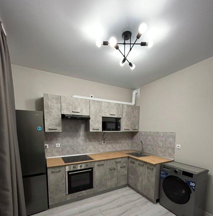 В комнате и на кухне есть вся необходимая мебель. Кухня просторная, площадью 9.8 кв. м, оборудована современной техникой: холодильник, микроволновая печь, варочная панель, духовой шкаф, стиральная машина. Санузел совмещенный, с ванной. Лоджия придает дополнительное пространство для отдыха.