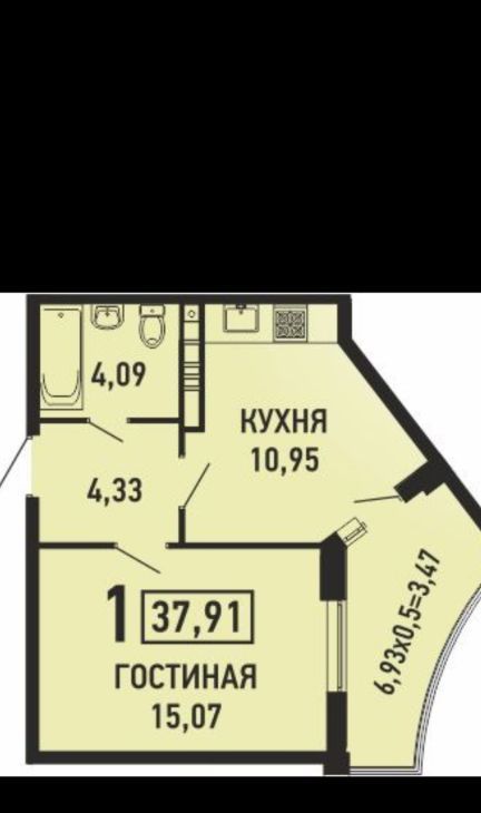 1-к кв. Краснодарский край, Краснодар ул. Имени Героя Николая Шевелева, 2 (37.0 м²)
