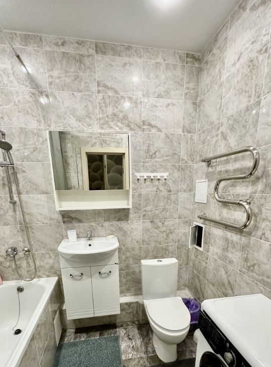 В квартире сделан современный евроремонт. На кухне и в комнате есть вся необходимая мебель. Для вашего удобства установлены кондиционер, холодильник и стиральная машина. Санузел совмещенный, оборудован ванной. Высота потолков 2,7 метра создает ощущение простора. Квартира оснащена интернетом, что позволяет работать и отдыхать с комфортом.