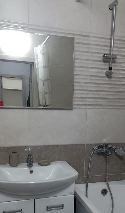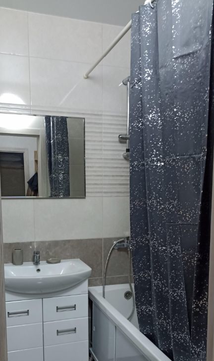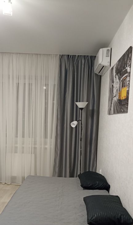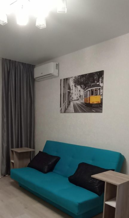 В квартире есть все необходимое для комфортного проживания. Совмещенный санузел оборудован ванной. На кухне и в комнате — современная мебель. Вся необходимая техника в наличии: кондиционер, холодильник, телевизор и стиральная машина. Также имеется лоджия, где можно насладиться свежим воздухом и видами города.