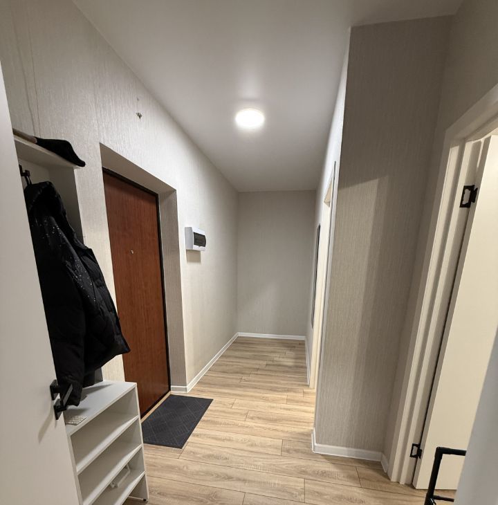 Квартира расположена на 16 этаже монолитно-кирпичного дома, построенного в 2023 году. В доме есть пассажирский и грузовой лифты. Открытая парковка во дворе за шлагбаумом обеспечивает удобство для автовладельцев.