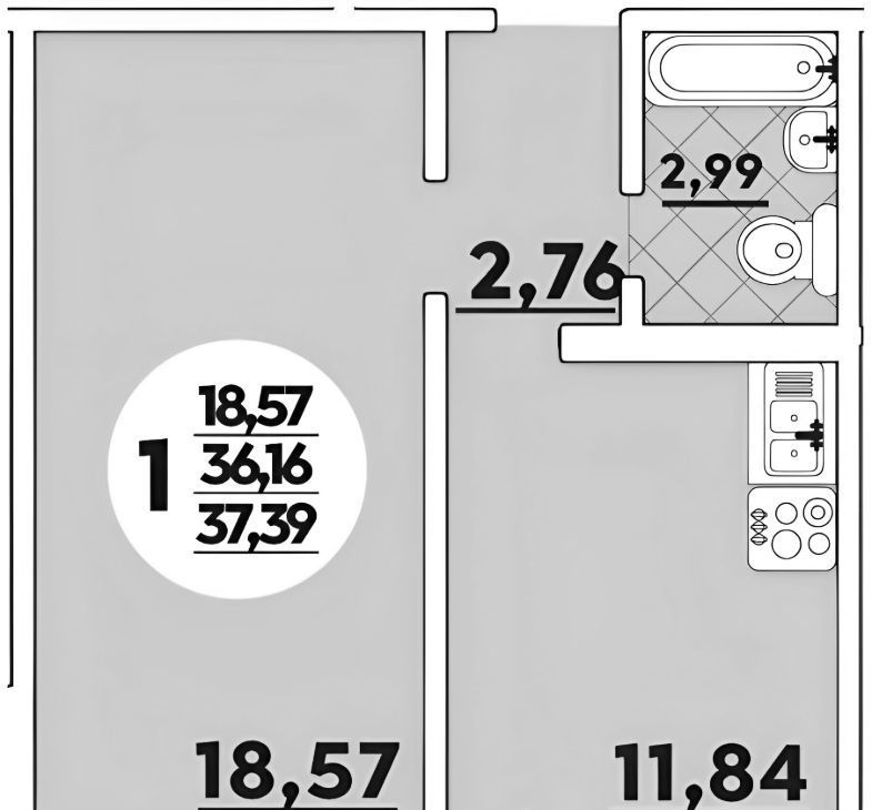 1-к кв. Краснодарский край, Краснодар ул. Имени Героя Советского Союза Якова Кобзаря, 1 (37.0 м²)
