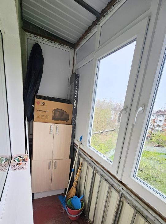 Балкон застеклен, что позволяет использовать егокруглый год. Есть бельевая верёвка снаружи балкона. Открытая парковка во дворе