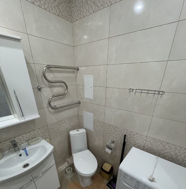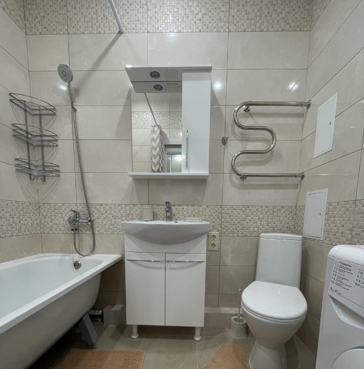 В квартире есть все необходимое для комфортного проживания. В комнате и на кухне установлена мебель, а также современная техника: кондиционер, холодильник, свч-печь, телевизор и стиральная машина. Санузел оборудован ванной, поэтому можно расслабиться после долгого дня. Специально оборудованный гардероб с раздвижной дверью. Окна выходят на улицу на северо-восток, открывается прекрасный вид на реку Кубань и восходы.