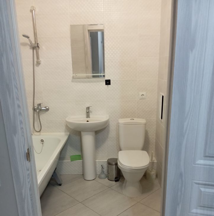 Квартира с евроремонтом, полностью готова к проживанию. В комнате и на кухне есть вся необходимая мебель. Техника также на высоте: кондиционер, холодильник, посудомоечная машина, телевизор и стиральная машина. Ванная комната оборудована удобной ванной. Благодаря современным решениям, в квартире есть надежный интернет, что особенно удобно для работы и развлечений.