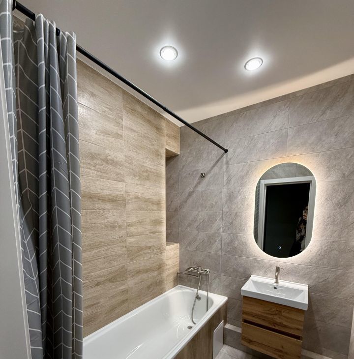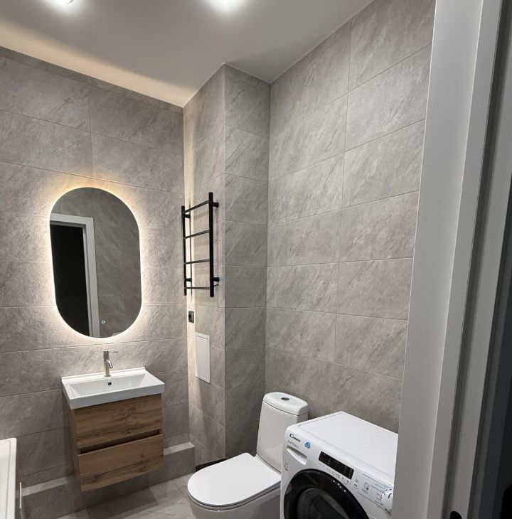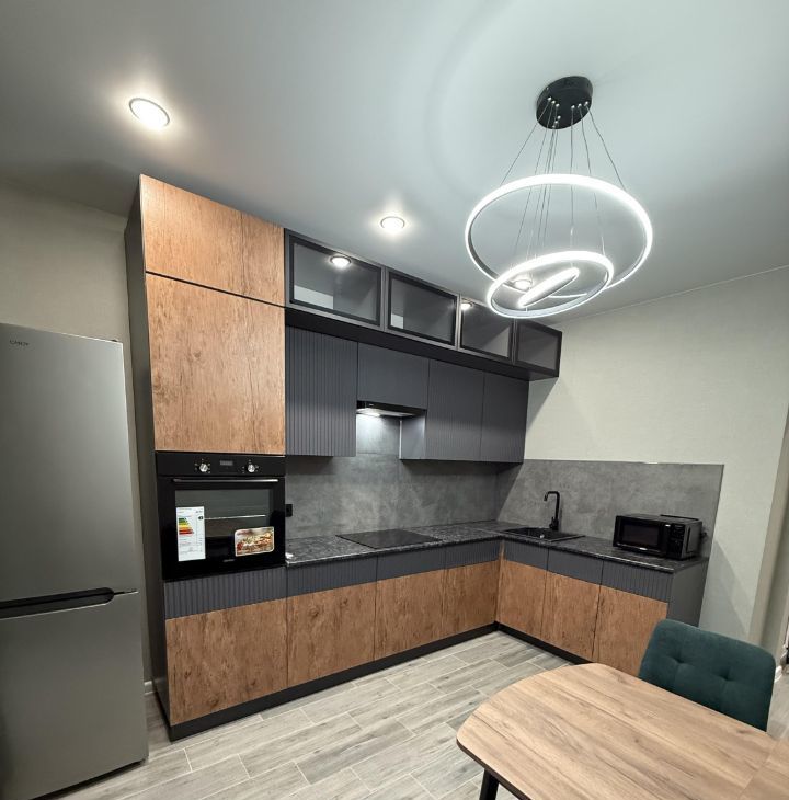 В квартире сделан качественный евроремонт. Просторная кухня площадью 12,6 кв. м оснащена всей необходимой мебелью и техникой, включая холодильник, духовой шкаф, индукционную варочную панель и микроволновую печь. В комнате также есть мебель, обеспечивающая комфортное проживание, телевизор со смарт тв, кондиционер. также есть вместительная гардеробная размером 2,1x1,9 м. Санузел совмещенный, в ванной комнате установлена ванна. На балконе можно организовать уютное место для отдыха.