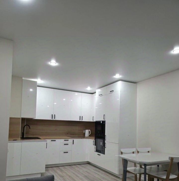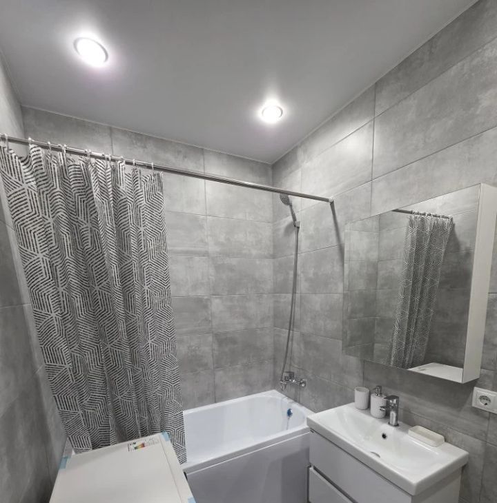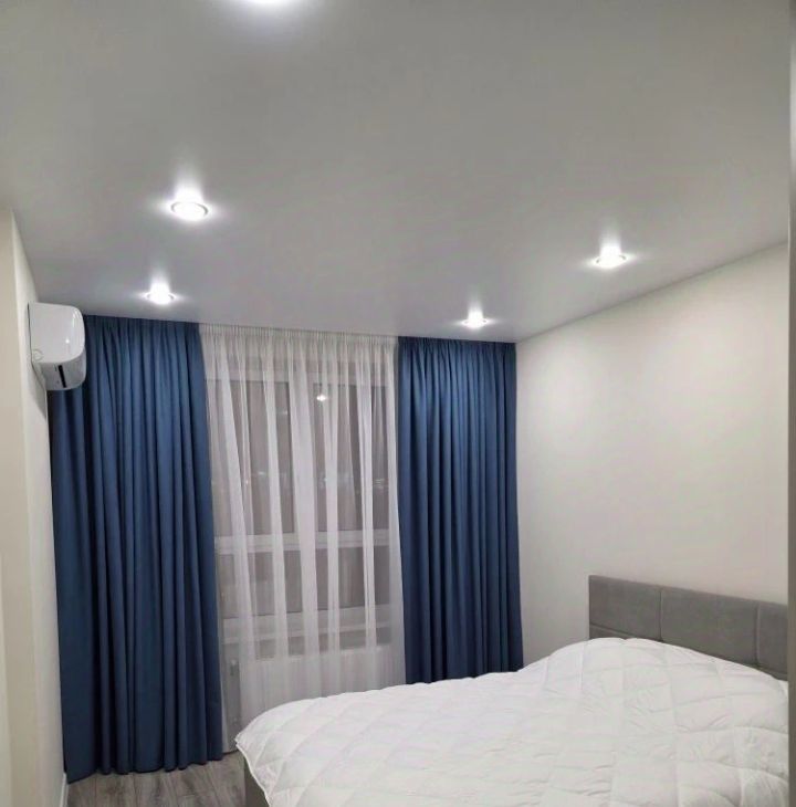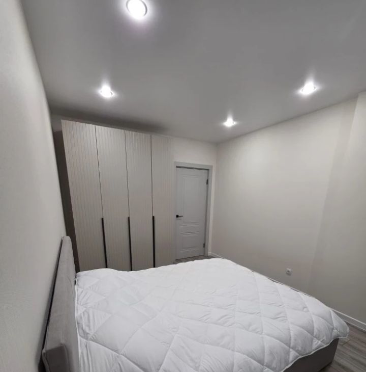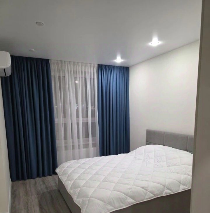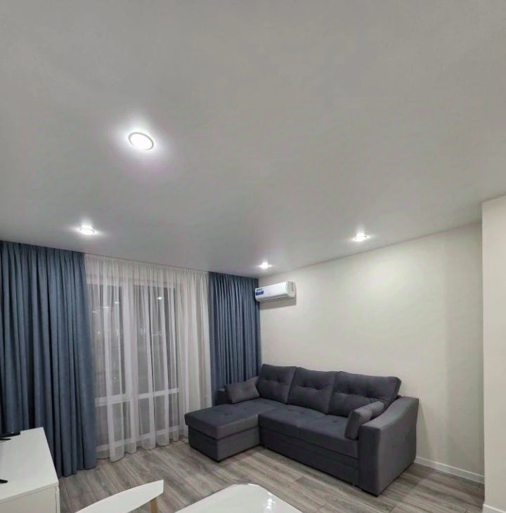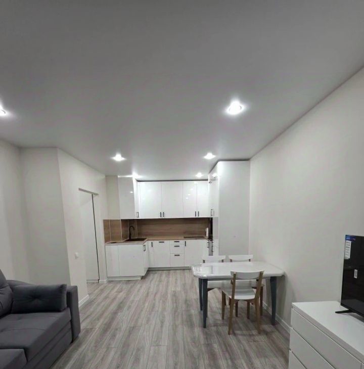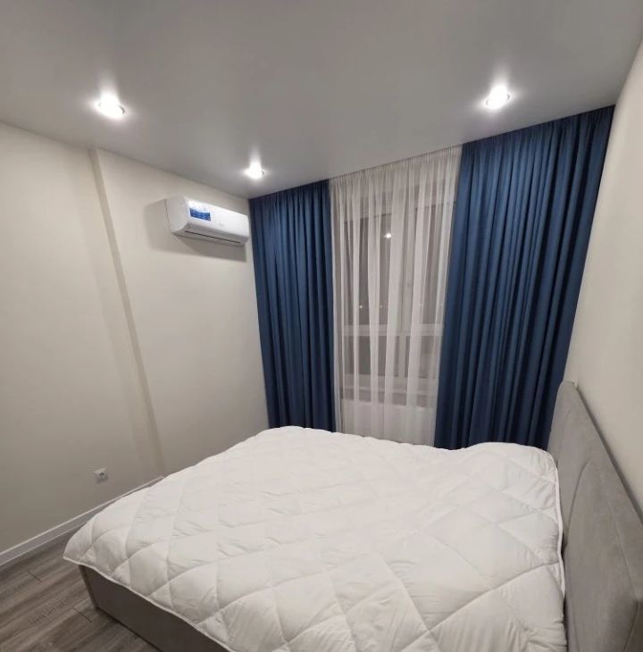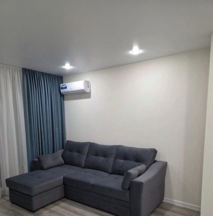 В квартире выполнен свежий евро ремонт. Просторная кухня оборудована всем необходимым: встроенные варочная панель, микроволновая печь, духовой шкаф, вытяжка, холодильник. Стиральная машина, посуда. В гостиной установлен кондиционер и телевизор. Из мебели — вместительные шкафы и удобный большой диван.