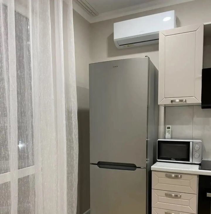 Квартира с евроремонтом, обставлена мебелью как в комнате, так и на кухне. Из техники в вашем распоряжении кондиционер, холодильник, телевизор и стиральная машина. Ванная комната оборудована современной ванной. Совмещенный санузел добавляет удобства в повседневной жизни.