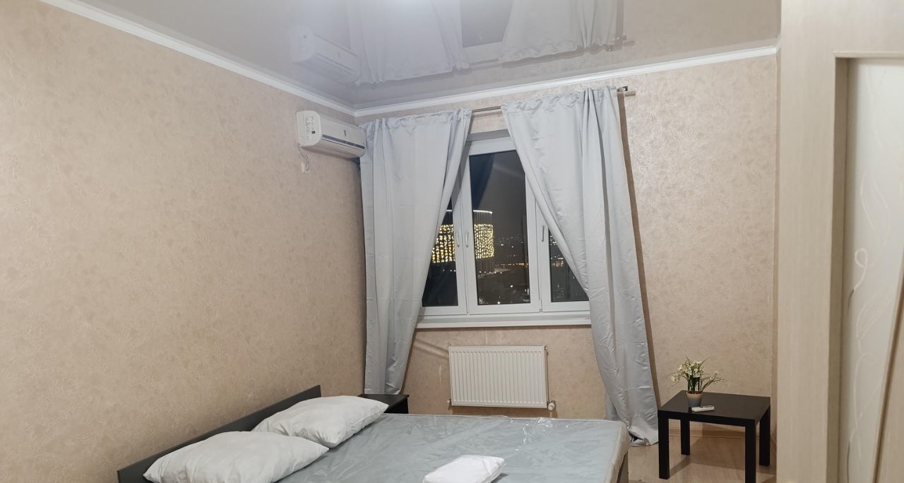 Сдаётся стильная однокомнатная квартира в Краснодаре по адресу: улица имени Жлобы, 145. Общая площадь составляет 38 кв. м, из которых 18 кв. м - это жилая зона, а кухня занимает 14 кв. м. Квартира расположена на последнем, восьмом этаже дома, построенного в 2016 году, поэтому из окон открывается отличный вид на улицу.