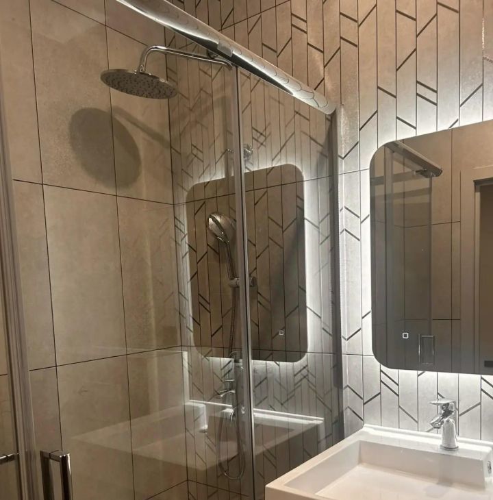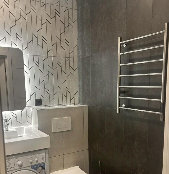 Ванная комната совмещенная, оформлена стильной плиткой и оснащена душевой кабиной. В наличии стиральная машина. Для вашего удобства предусмотрены кабельное/цифровое ТВ и кондиционер.
