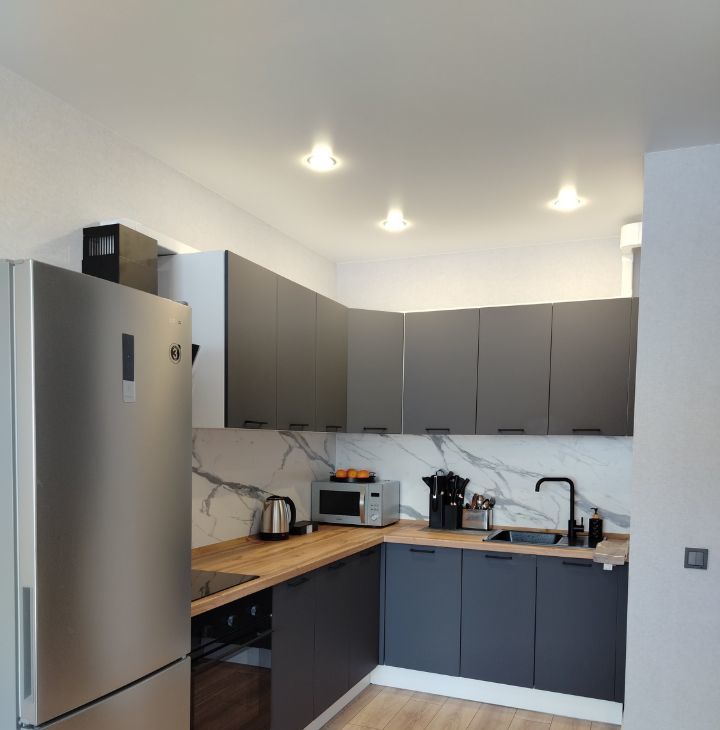 В квартире сделан стильный евроремонт, который создаёт атмосферу уюта и комфорта. Просторная комната и полностью оборудованная кухня с необходимой мебелью и техникой, включая, холодильник, стиральная машина, посудомоечная машина, посуда, постельное белье позволяет вам комфортно устроиться с первого дня прибывания.
