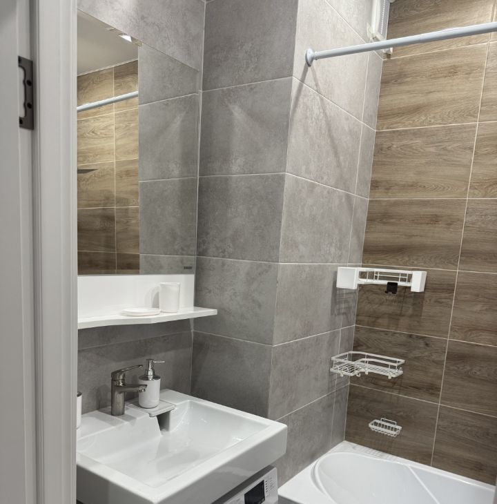 В комнате и на кухне есть необходимая мебель, поэтому можно сразу заселяться без лишних хлопот. Из техники есть все необходимое: кондиционер, холодильник, телевизор и стиральная машина — все для вашего удобства и уюта.