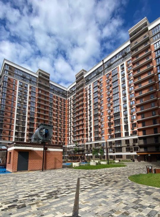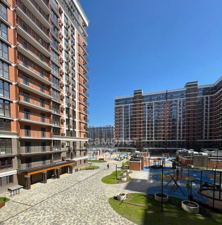 Окна квартиры выходят в тихий, благоустроенный двор с детской площадкой. Благодаря удачному расположению, из окон открывается приятный вид, а вдалеке можно увидеть живописное озеро, создающее ощущение простора и гармонии.