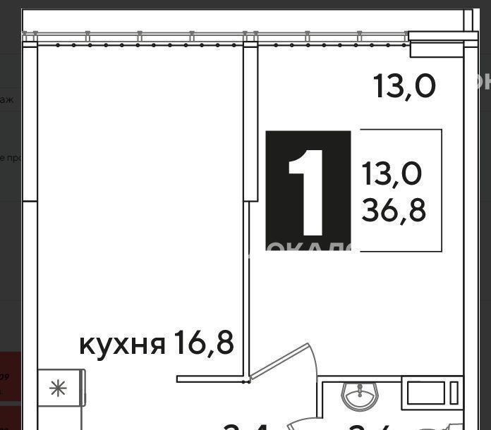 Студия Краснодарский край, Краснодар ул. Ивана Беличенко, 95к1 (30.0 м²)