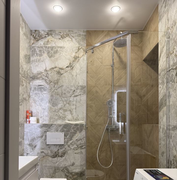 Санузел: душевая кабина , стиральная машина .