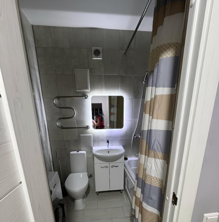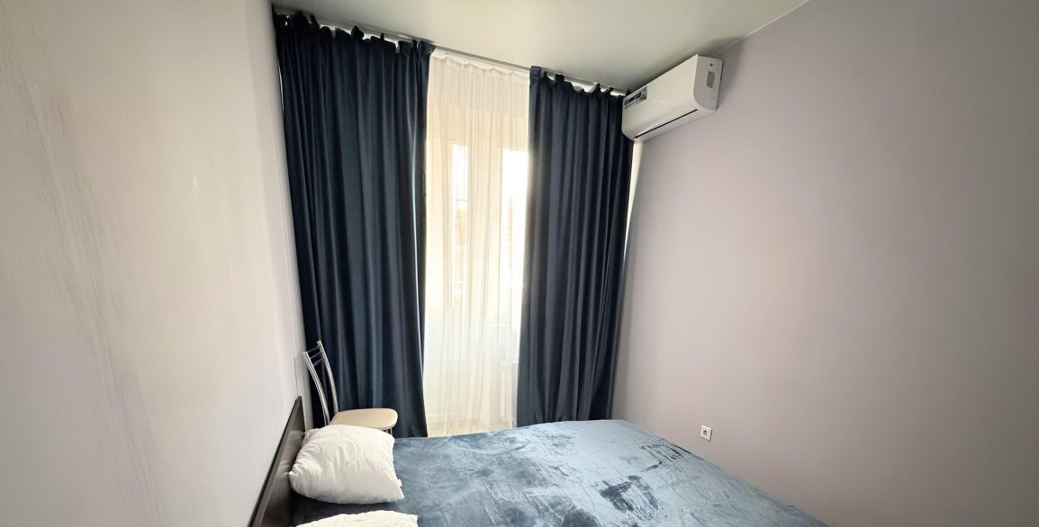 Квартира с косметическим ремонтом, в комнате и на кухне есть вся необходимая мебель. Из техники — кондиционер, холодильник, телевизор и стиральная машина. Ванная комната оборудована ванной, санузел совмещённый. На балконе можно наслаждаться свежим воздухом и видом на двор.