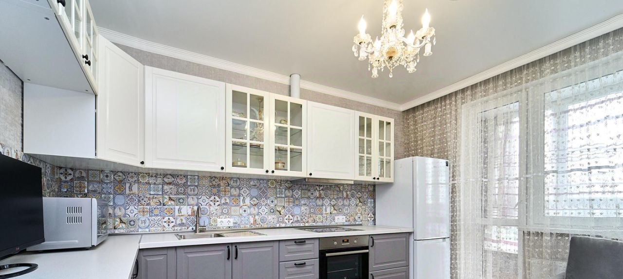 Просторная кухня-гостиная: Полный комплект встроенной техники (холодильник, микроволновая печь, варочная панель, вытяжка).