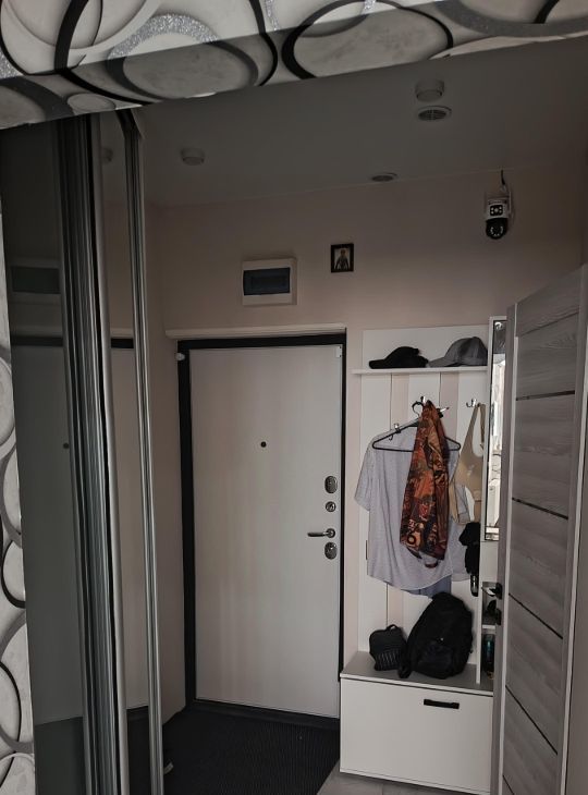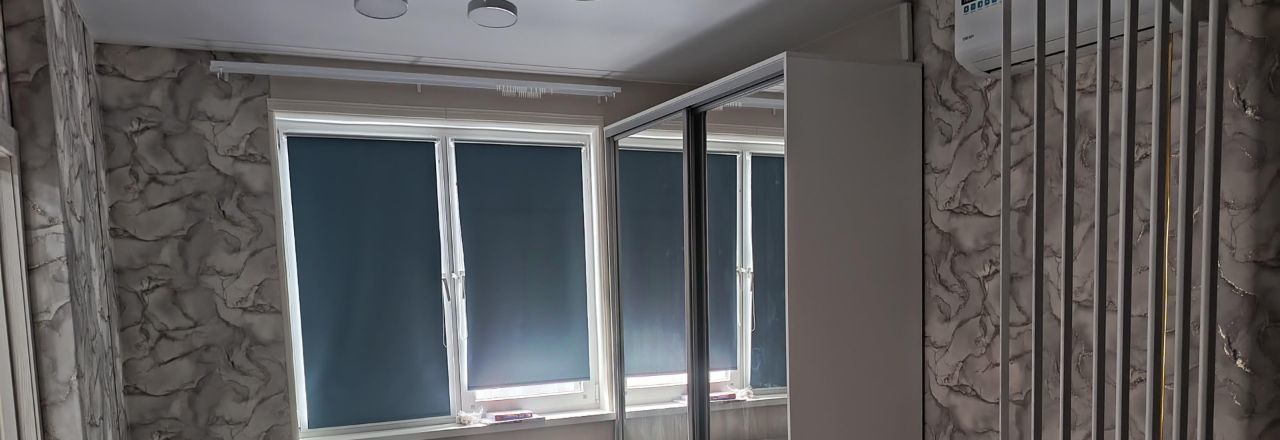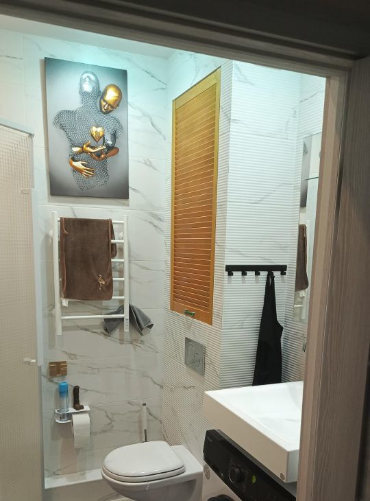 В квартире выполнен дизайнерский ремонт. Просторная комната с большим окном и вместительным шкафом. Из мебели — встроенные шкафы и диван. В кухне установлен холодильник. Санузел совмещенный, оборудован современной сантехникой и стиральной машиной.