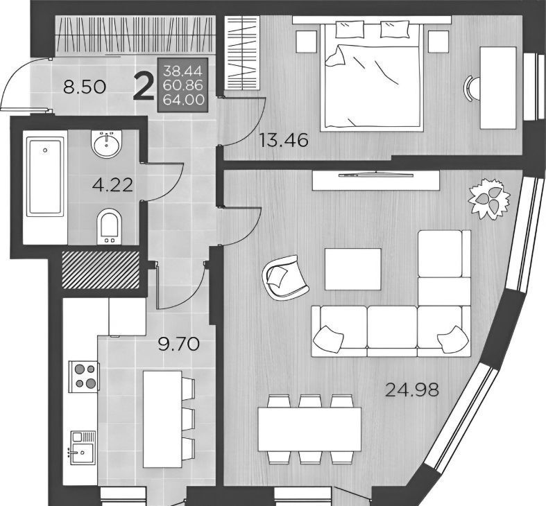Сдаётся новая квартира на девятом этаже,монолитно-кирпичного дома 2021 года постройки.