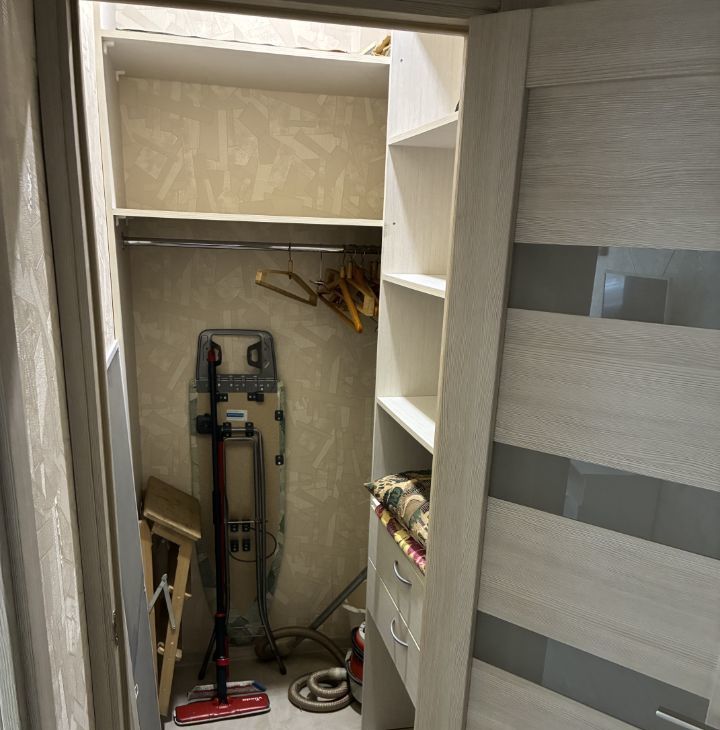 Также имеется просторная гардеробная, где удобно хранить вещи.