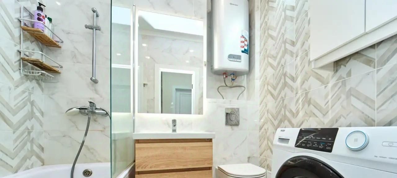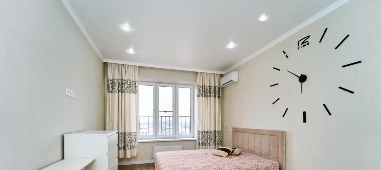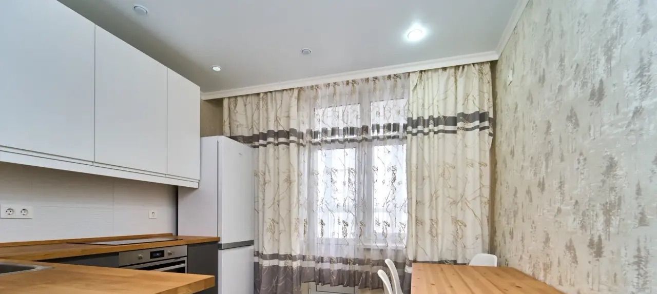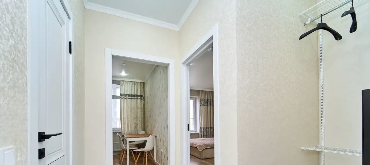 Предлагаем вам в аренду уютную однокомнатную квартиру с евроремонтом, расположенную на 17 этаже современного 22-этажного дома, построенного в 2021 году. Общая площадь квартиры составляет 38 кв. м, из которых 15 кв. м — жилая площадь и 13 кв. м — просторная кухня. Высокие потолки (2.76 м) и большие окна, выходящие на улицу, обеспечивают отличное естественное освещение и создают ощущение простора.