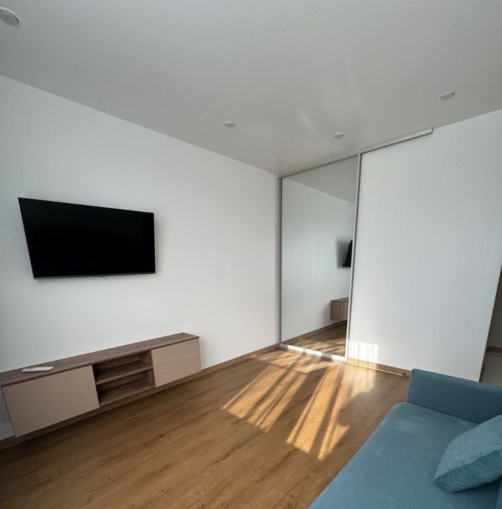 В квартире сделан дизайнерский ремонт, который придаёт стильный и современный вид. Комната обставлена мебелью, поэтому вам не придётся заботиться о её покупке. Оснащена необходимой техникой: кондиционер для комфортной температуры в любое время года, холодильник,телевизор для просмотра любимых программ и стиральная машина.