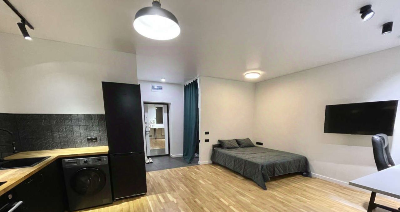 Отличная планировка: Большая светлая комната с нишей под спальную зону и гардеробную, просторная кухня с выходом на уютный балкон с витражным остеклением, совмещенный санузел. В квартире ремонт в светлых тонах. Широкий портал из комнаты в кухню создает отличное светлое пространство, что визуально расширяет площадь квартиры.