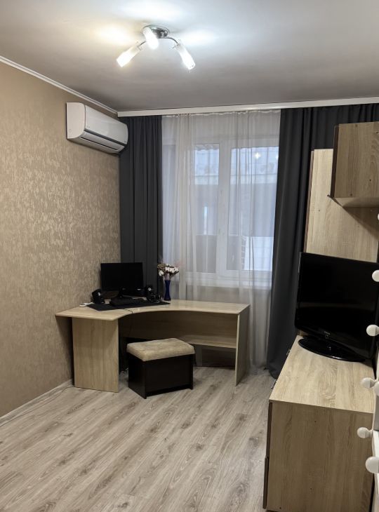 Светлая комната с удобным раскладным 2спальным диваном, шкафами для хранения, компьютерным столом (компьютера не будет), большим зеркалом с подсветкой и аккуратным современным ремонтом.