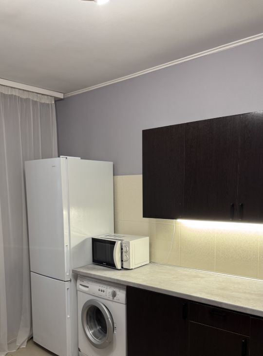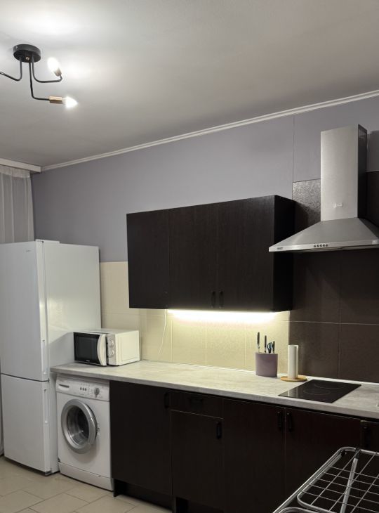 Мебель и техника: диван, шкафы, столы, полноценная кухня, холодильник (абсолютно новый, не пользовались), стиральная машина, кондиционер, телевизор, микроволновка, электрическая плита, пылесос, фен, посуда и тд