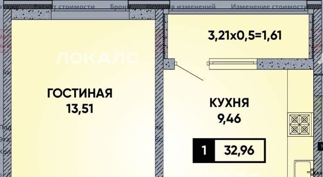 1-комнатная квартира: Краснодар, улица им. Мурата Ахеджака, 12к2 (33 м²)