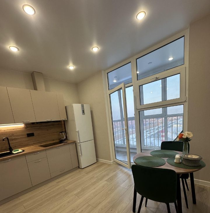 Новая квартира в ультрасовременном ЖК, есть все необходимое для комфортной жизни. Супермаркеты, магазины свежих овощей , аптеки , кофейни, рестораны , прогулочная зона, садик, школа - все в шаговой доступности. Остановка общественного транспорта, большая территория для парковки, рядом спорт комплект Баскет Холл и Ледовый дворец, парковая зона, удаленность от центра города 20-30 минут. Дом граничит с частным сектором, из окна прекрасный вид , нет многоэтажных домов в перспективе , закрытая ухоженная территория , охрана. В квартире все необходимое есть, мебель, техника и системы хранения, зона на балконе оборудована для отдыха.