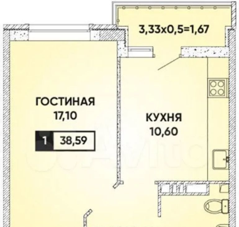 1-к кв. Краснодарский край, Краснодар ул. Им. Мурата Ахеджака, 10А (38.5 м²)