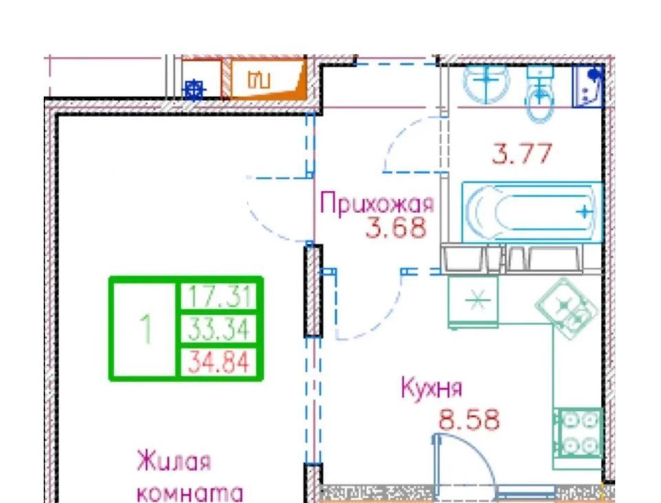Сдаётся уютная однокомнатная квартира с современным евроремонтом в новом кирпичном доме 2022 года постройки. Квартира находится на 13 этаже из 18, что обеспечивает великолепный вид из окон, выходящих на улицу. Общая площадь квартиры составляет 34.5 кв. м, из которых жилая площадь — 17.31 кв. м, а кухня занимает 8.58 кв. м. Высота потолков 2.7 метра создаёт ощущение простора.