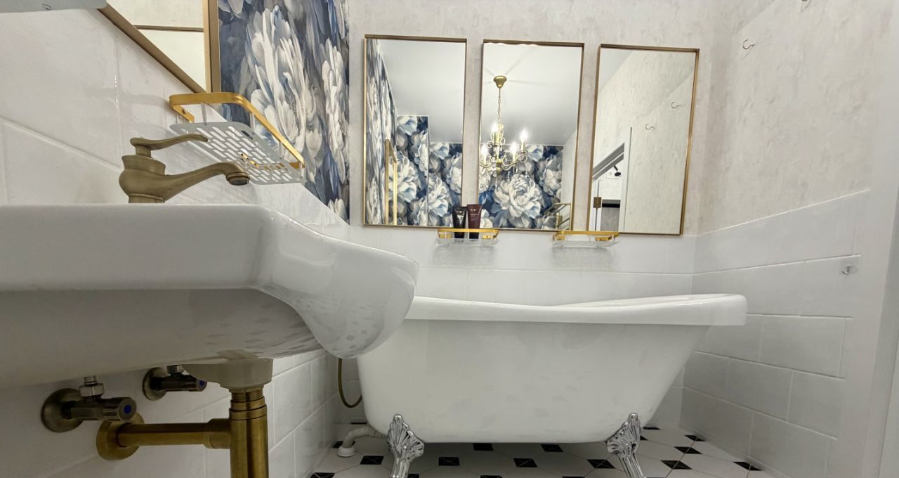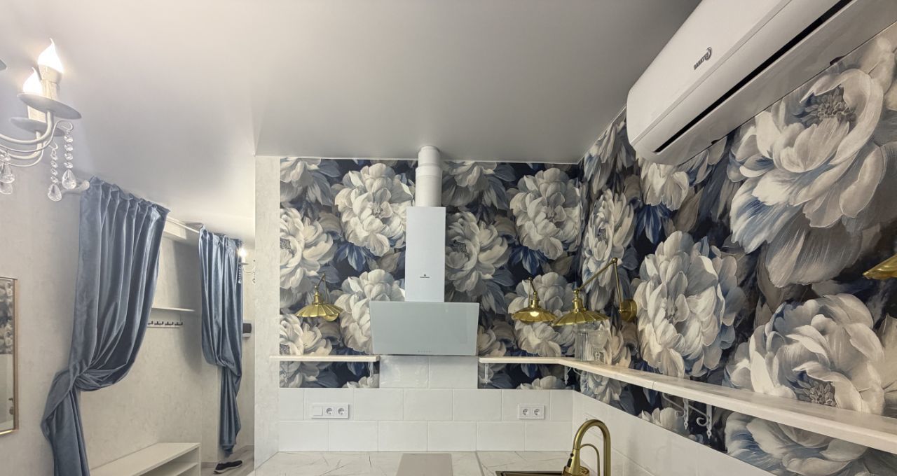 Ремонт: авторский, с элементами классики — цветочные обои, хрустальные люстры, золотая фурнитура