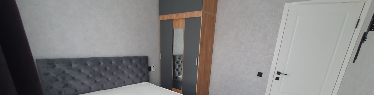 Вспальне в наличии двухместная кровать с удобным матрасом, тюль и шторы блэк-аут, телевизор.