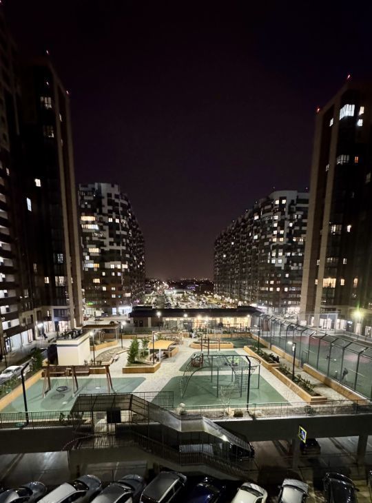 Собственный парк Флагманский (42 000 м²) прямо во дворе — фонтан, зона барбекю, памп-трек, прогулочные аллеи. Выход из подъезда сквозной — сразу к парку!