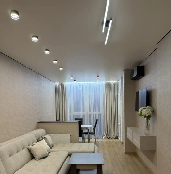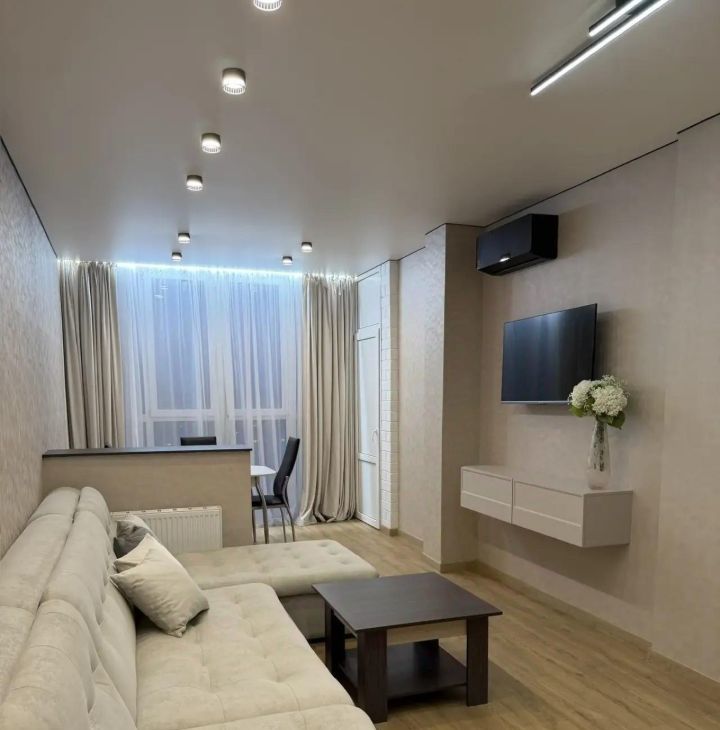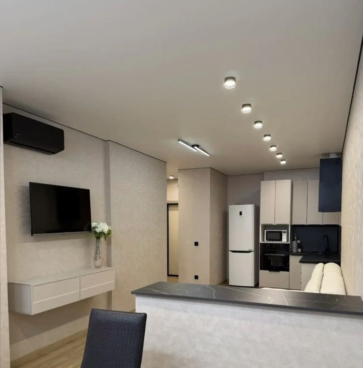 Новый ремонт, ни кто не жил, 2 кондиционера, два телевизора, стиральная машина, микроволновая печь, электрочайник, посудомоечная машина, холодильник, два дивана. Шкаф купе и прихожая.