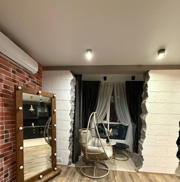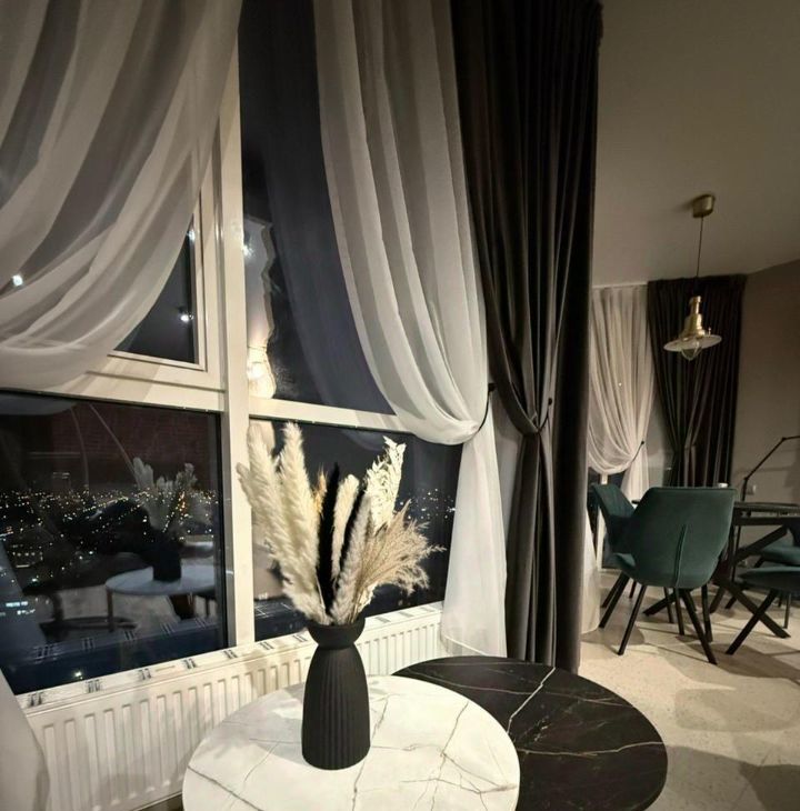 В квартире имеется абсолютно все для комфортного проживания. Дизайнерский ремонт, панорамные окна, шикарный вид на город.
